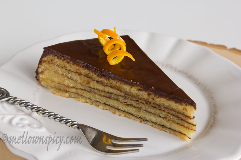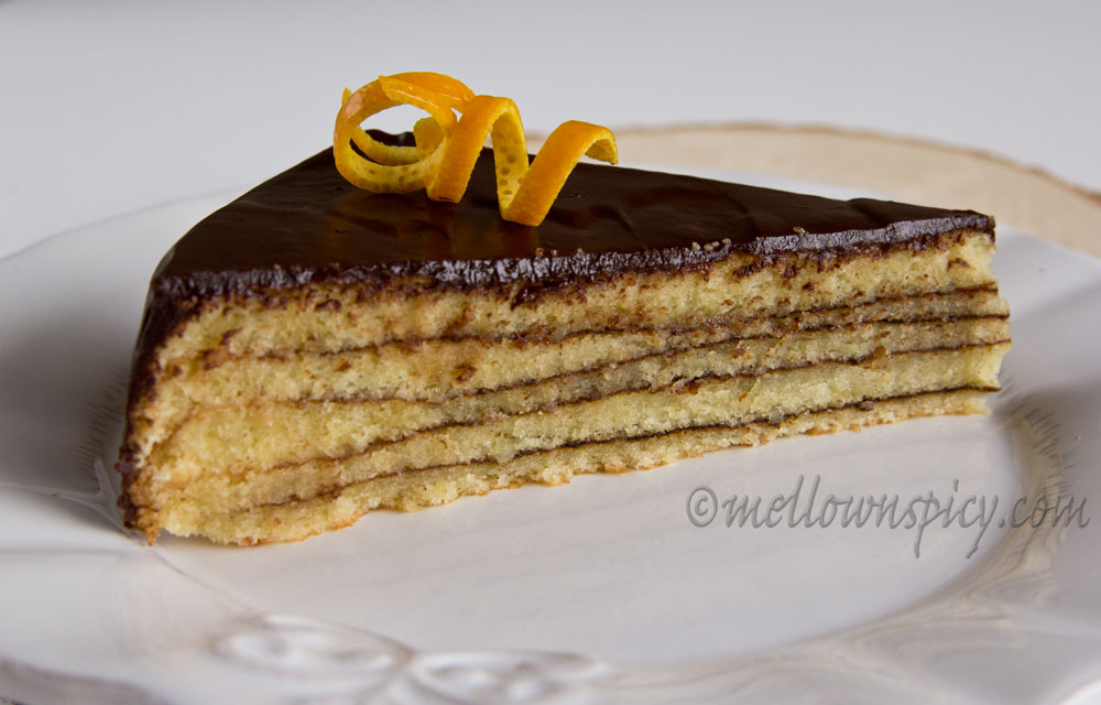 The January 2014 Daring Bakers’ challenge was hosted by Francijn of “Koken in de Brouwerij“. She challenged us all to bake layered cakes in the tradition of Baumkuchen (tree cake) and Schichttorte (layered cake).