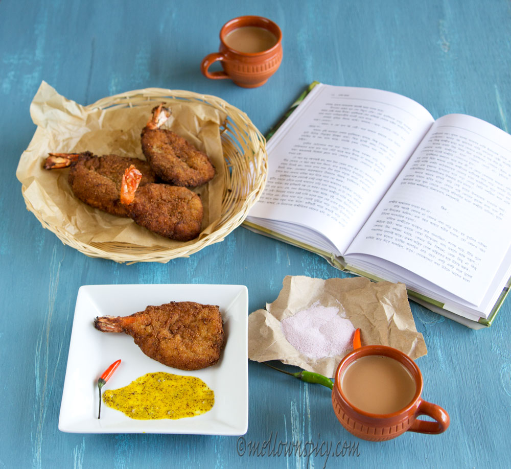 They are not only crispy and crunchy, the flavors that go in while marinating the prawns is great too. The mustard oil gives a sharp flavor to the cutlets. I prepared these over the weekend when I had some friends over and was a super hit. We had it with mustard sauce or kashundi but you may have it with your favorite sauce or dip.
