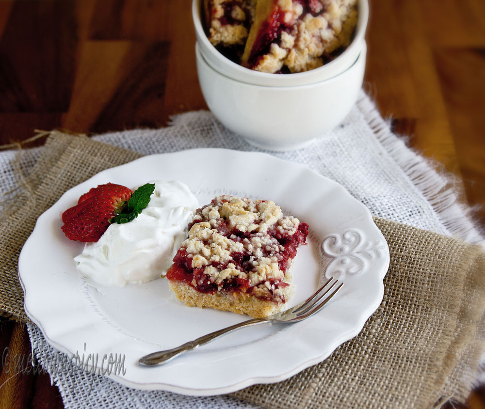 These strawberry crumb bars came out so well. They were crispy on the outside but soft and gooey inside. Perfect with a scoop of vanilla ice-cream or whipped cream.
