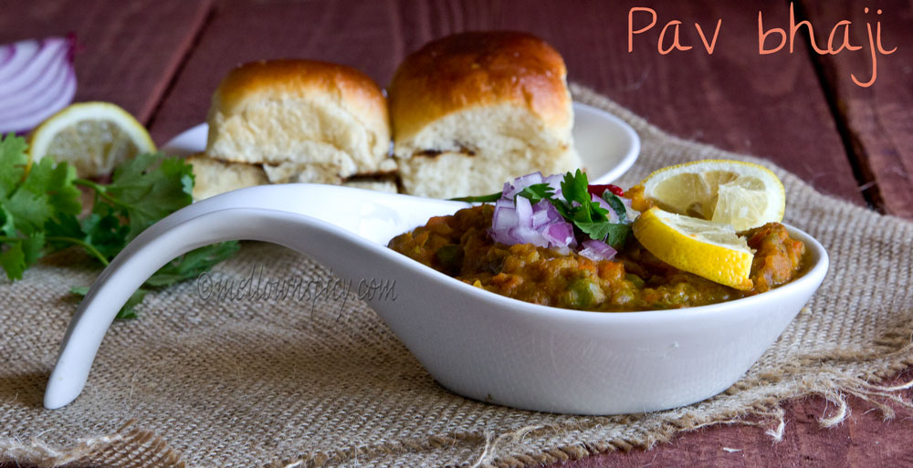 It is a kind of fast food mainly intended for snack but can be had as a main meal. The pav bread rolls are toasted with generous amount of butter and served with a side of hot and spicy vegetable mash. The rolls are dipped into the vegetable gravy and devoured.