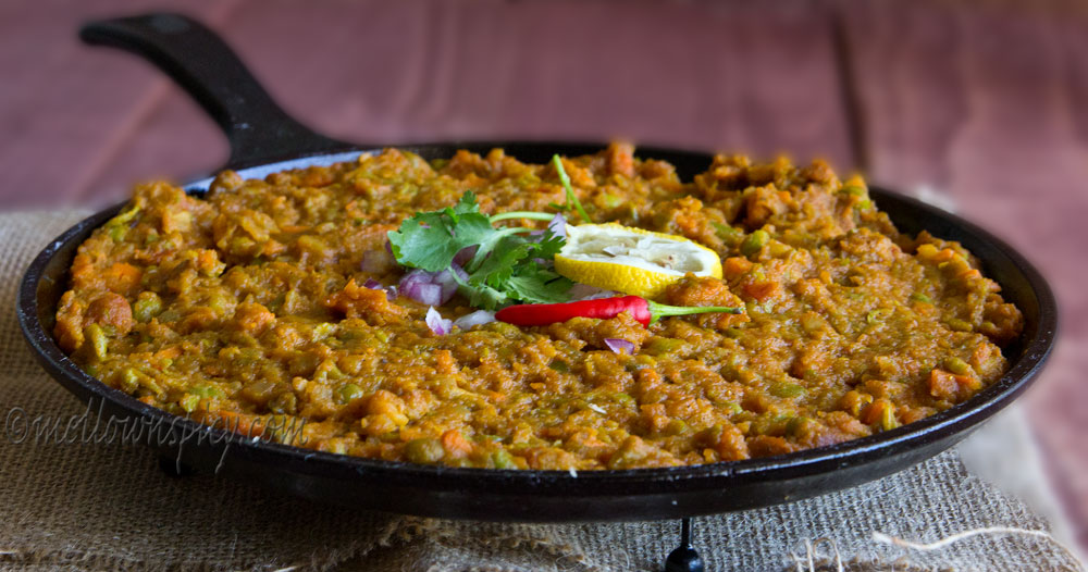 - When the vegetables are cooked through and have come together with the masala, the bhaji is ready.
