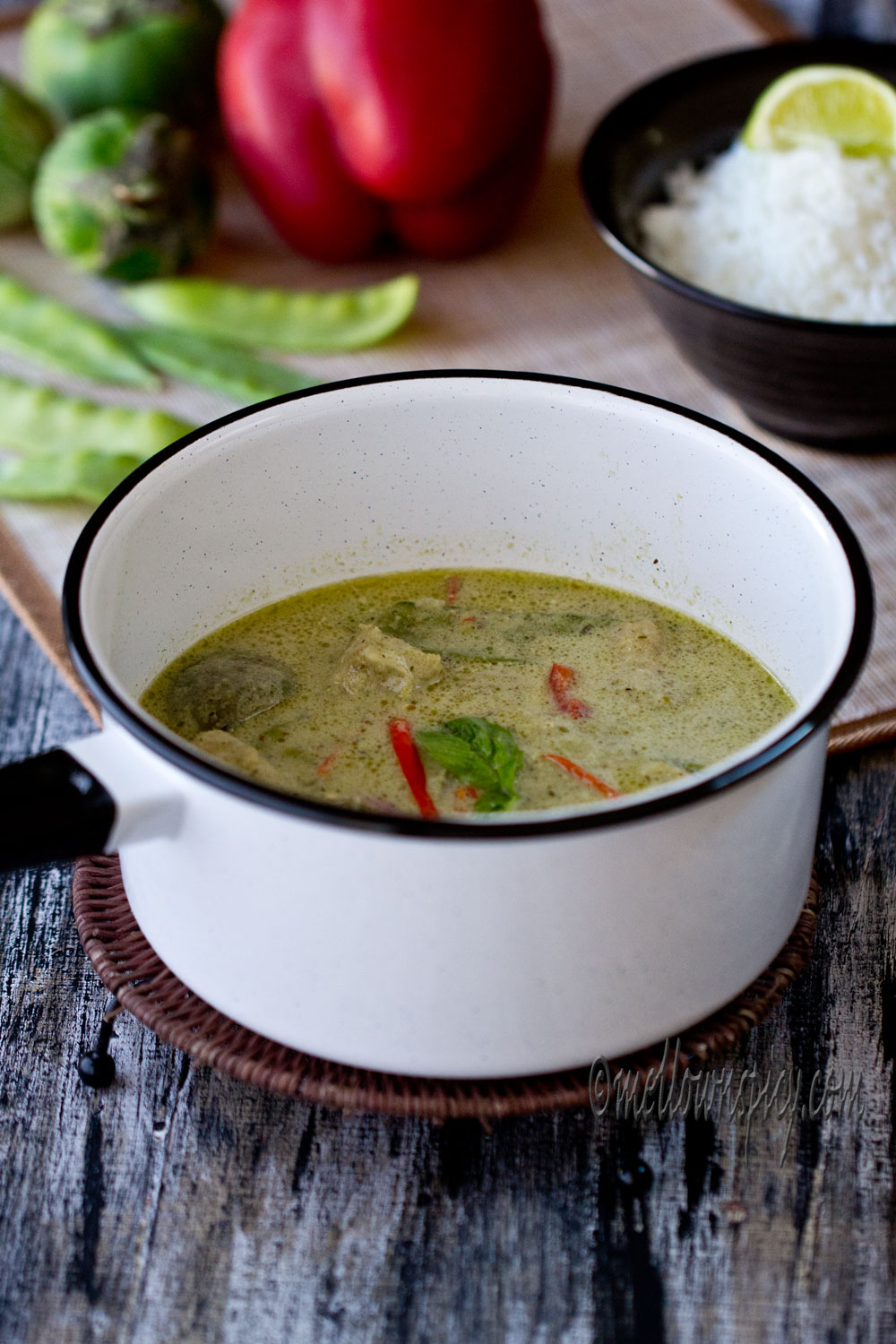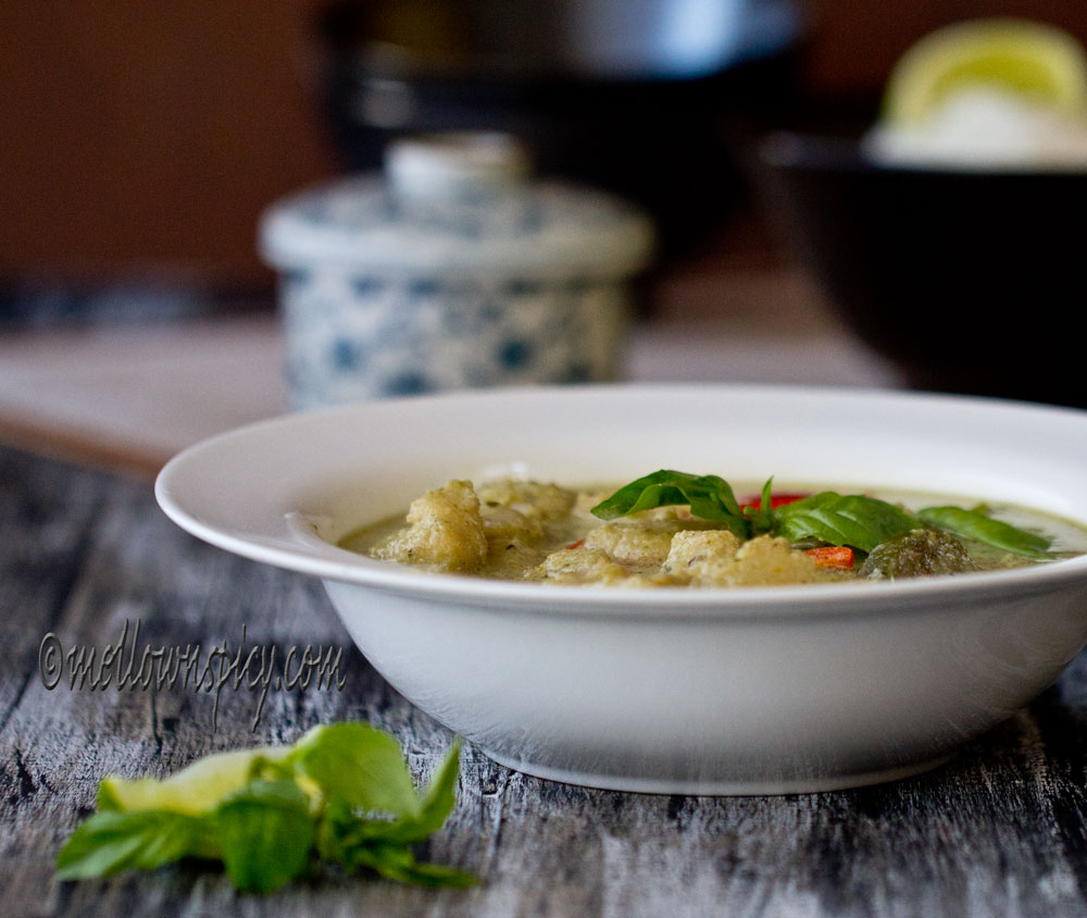 This mildly spicy aromatic Thai green fish curry is to die for. The soupy gravy with crisp veggies and soft melt in the mouth fish pieces make the curry exotic. The veggies especially the eggplants soak in all the flavor from the gravy. To believe me, you need to make this curry to know how it tastes. So go ahead and make a batch of green curry paste first and then make a curry out of it.
