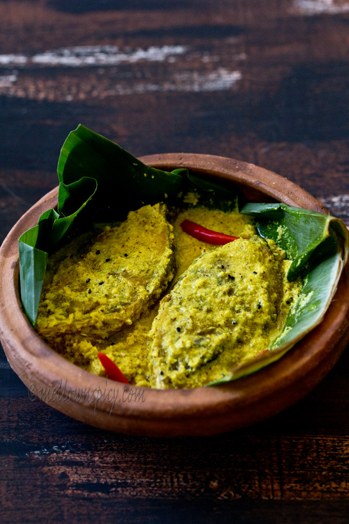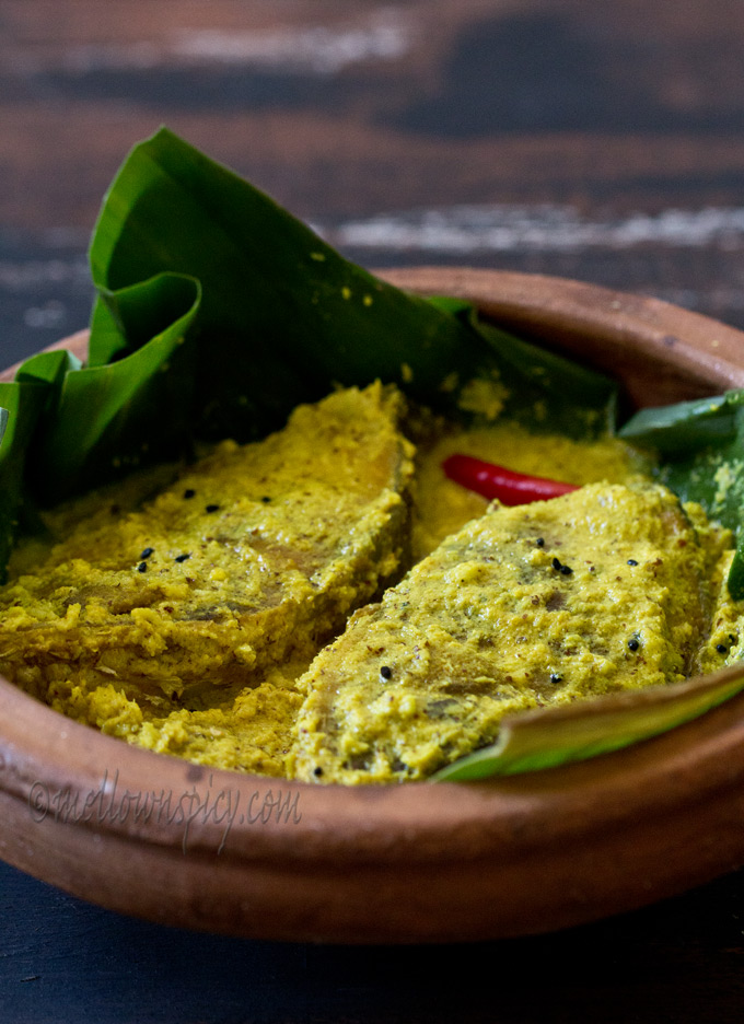 The flavor of the fish is enhanced by the mix of mustard, posto and coconut. The mustard gives a pungent taste, the posto a nutty flavor, whereas the sweetness from the coconut balances off the tanginess from the yogurt. A complete balance of flavor and taste it is.