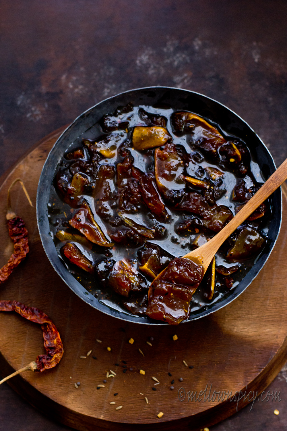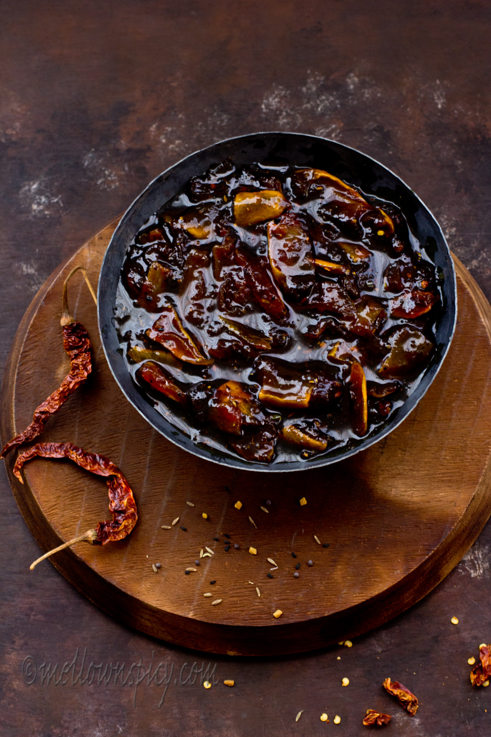This pickle is mix of sweet and sour in taste and tastes lip smackingly good! This goes great with any Indian breads or can be had after meal.