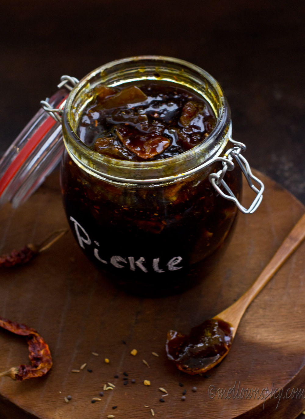 This pickle is mix of sweet and sour in taste and tastes lip smacking good! This goes great with any Indian breads or can be had after a meal.