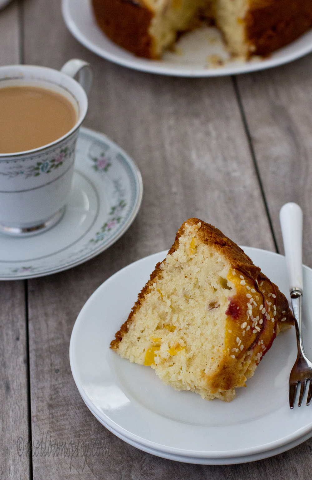 No creaming of butter and sugar, no frosting, yet you come up with a beautiful cake at the end! The stone fruit season is coming to an end and this peach tea cake is a must try before the peaches vanish from the market.