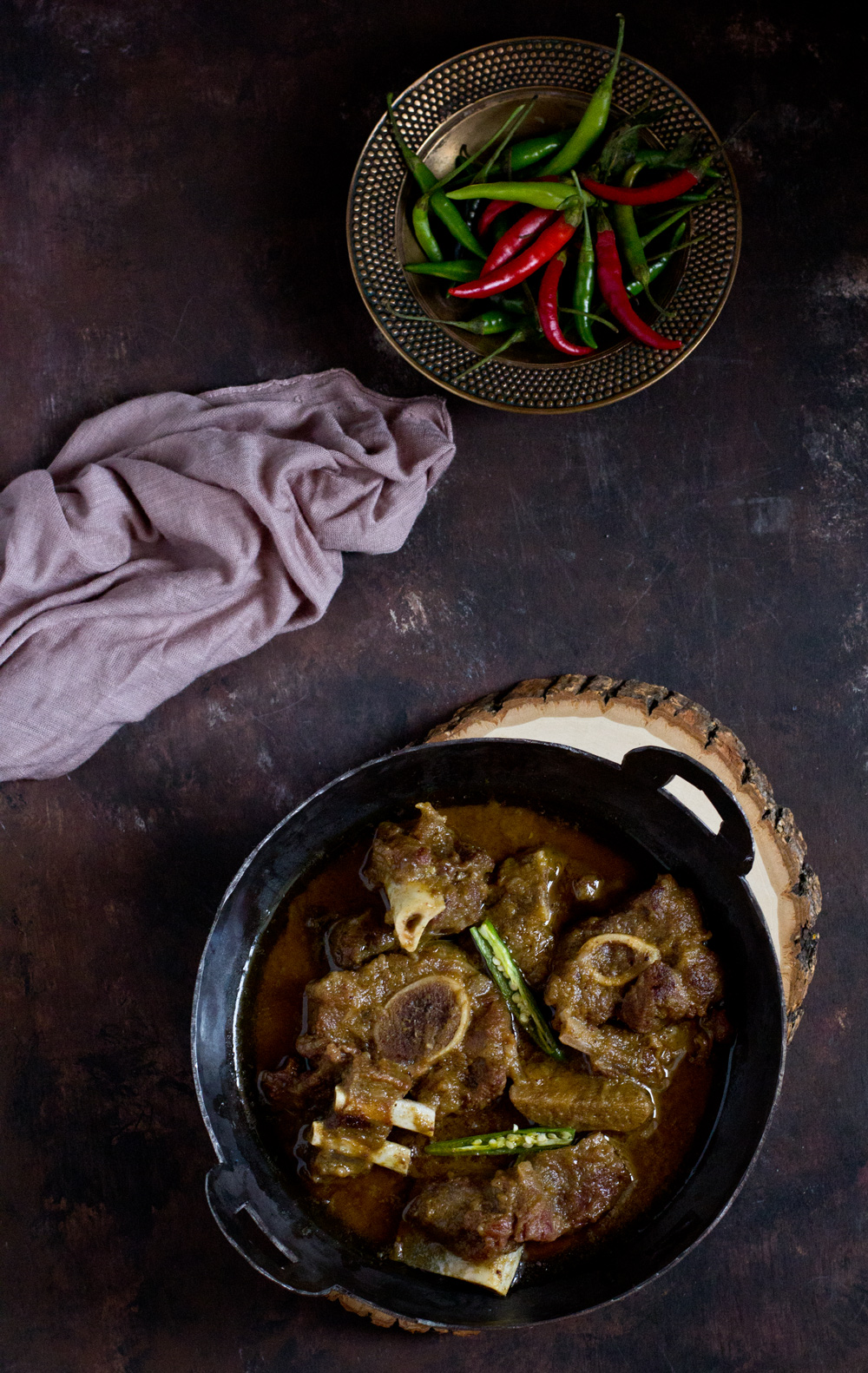Kancha lonka mutton is an easy recipe with very few ingredients. This recipe is same as the regular mangsher jhol but the prevalent flavor of the green chili makes the difference. The spicy and fiery gravy with succulent pieces of meat goes great with just plain Basmati rice. If you want to be fancy, pulao or luchi are great accompaniments too. No turmeric and red chili powder is used in this recipe as the flavor, color and heat comes only from the green chilies. Amount of green chili paste is a personal preference. Add more or use less according to your level of handling spiciness.