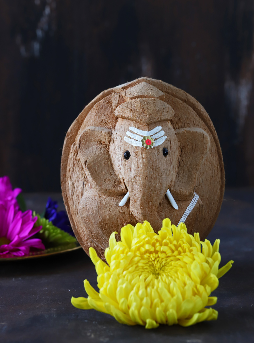 Before I share the recipe let us take some time to appreciate the Lord Ganesha idol which I got from Kerala when we visited 2 years back. It is made with a single coconut shell carved perfectly to give the shape of Lord Ganesh. Beautiful! Isn’t it?